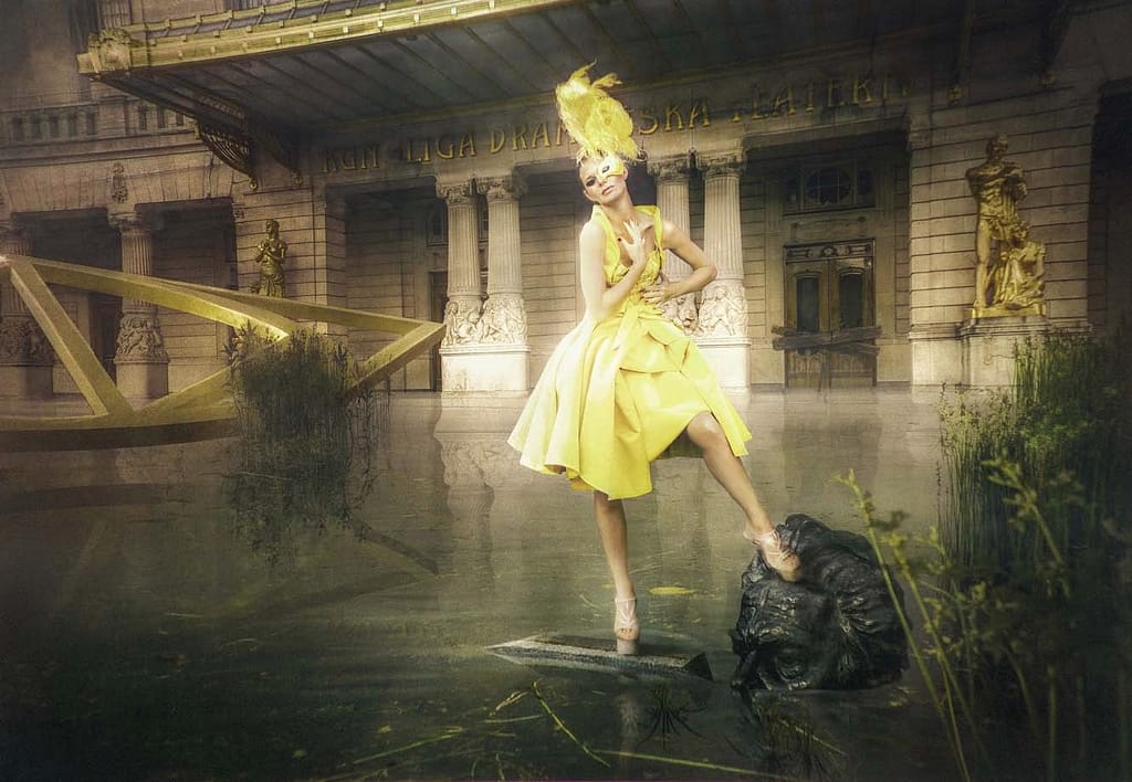 landmärken, med mode och konsten som utgångspunkt har vi sedan adderat en potentiellt framtida klimatsituation. Bildernas uttryck är dramatiskt och kraftfullt men ger även åskådaren en tankeställare. Vi hoppas inspirera och motivera till dialog.