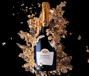 Salon, Krug, Dom Pérignon – och Taittinger. Där har du mina personliga favoriter (läs mer om champagne och design på sidan 100). Lagom till nyår släppte Taittinger, som flera gånger belönats för sitt hållbarhetsarbete, Comtes de Champagne Blanc de Blancs, årgång 2011, 1 595 kr.
