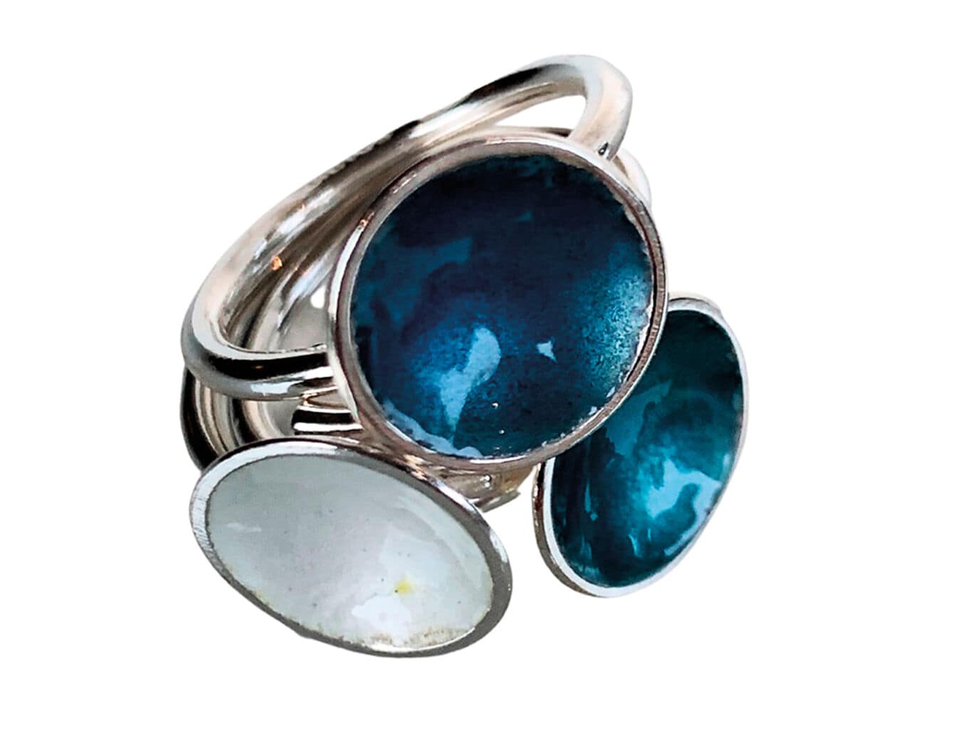 Magi med emalj. Nordnorges storslagna natur utgör inspirationskällan för smyckedesignern Catrine Linder Sandberg, grundaren av märket 925catrinelinder. En passion hon så väl förmedlar i sin signaturkollektion Dots där hon arbetar med emaljering: Den magiska fusionen mellan glas och metall fångar in de arktiska nyanserna i ett magiskt skimmer, från snövitt till havets olika blå toner. Flera olika färger finns. Ringar ur kollektionen, 1 525 kr/st.