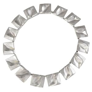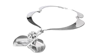 tacksamma: Theresia började experimentera med smycken redan som 13-åring när hon såg dem tillverka tennsoldater. Sedan dess har hon vunnit otaliga utmärkelser, däribland det prestigefyllda Diamond International Award. Tre gånger. Hennes silversmycken röner lika mycket uppmärksamhet som hennes juveler och finns utställda världen över. Det vackra halsbandet Flower Power skapade hon 1975 till en utställning på Norrköpings museum. Pris vid förfrågan.