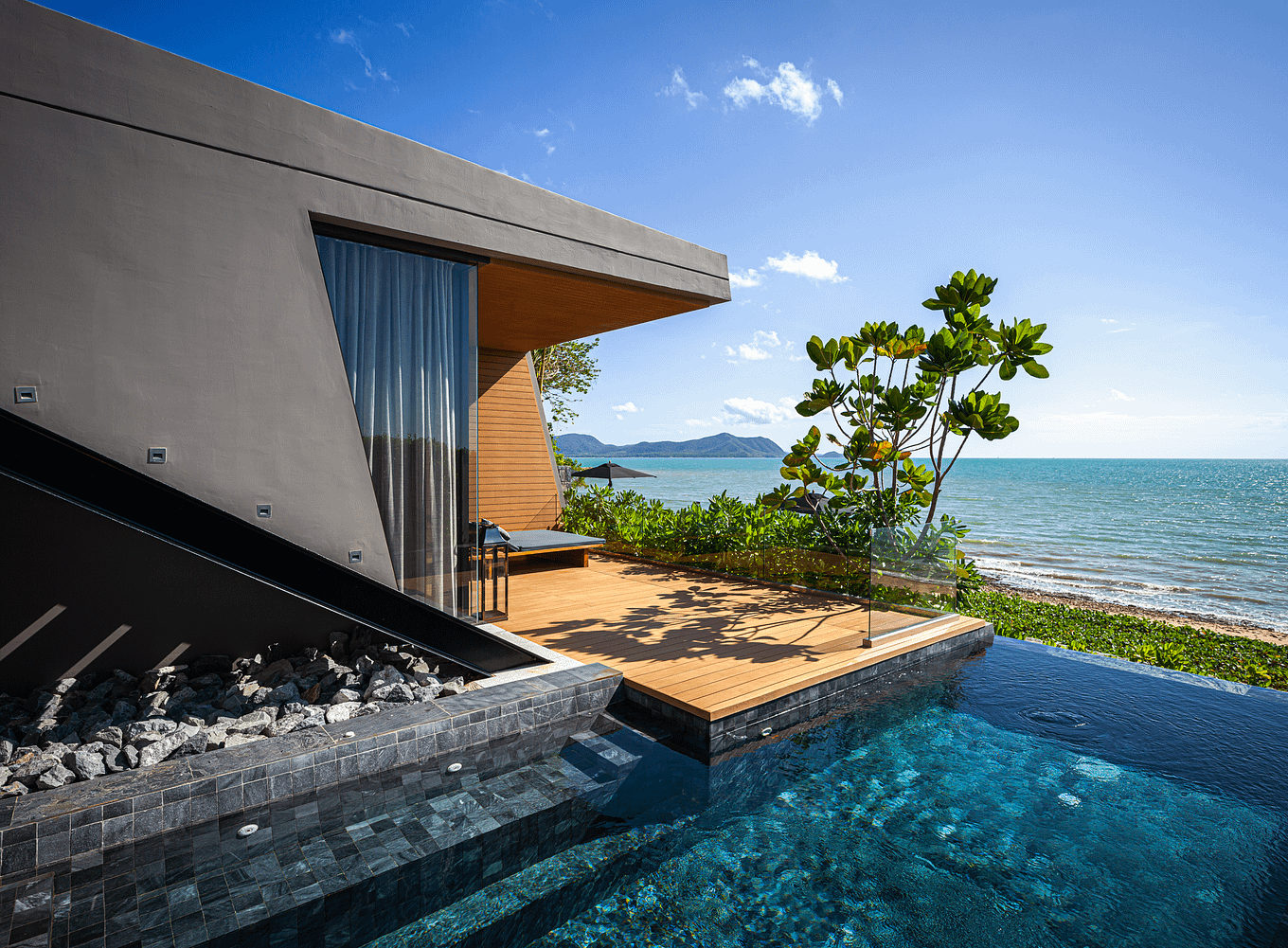 Tre dagar senare flyger du en timme till Bangkoks flygplats följt av en kort resa till strandstaden Pattaya. Den före detta partystaden har fått en mer barnvänlig atmosfär och lockar både med sin berömda golfbana Siam Country Club och den stora djurparken Khao Kheow. Takhiantia Community har en lång cykelled där du kan besöka ett samhälle med kokosnöten i fokus sedan långt tillbaka i historien. Ultramoderna hotell Mason har panoramavy över havet och solnedgången med en arkitektur inspirerad av den vackra omgivningen av sten och palmer, som den nästan smälter in i. Checka in för en natt.