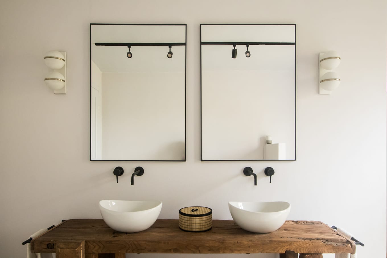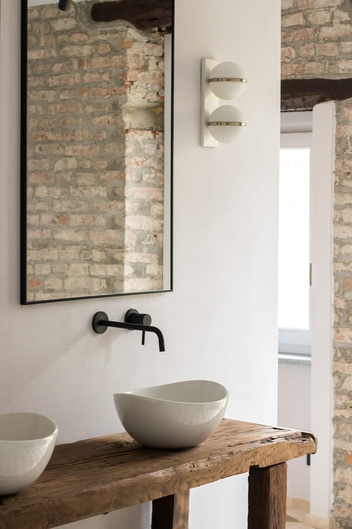 Vi ville göra ett elegant och inbjudande badrum med rustika detaljer. Vi har tidigare renoverat vårt badrum i lägenheten i Stockholm så vi tog med oss några lärdomar därifrån. Bland annat blev inte ljussättningen där superbra och rummet känns lite kalt. Denna gång ville vi skapa ett badrum med mer värme i tonerna.