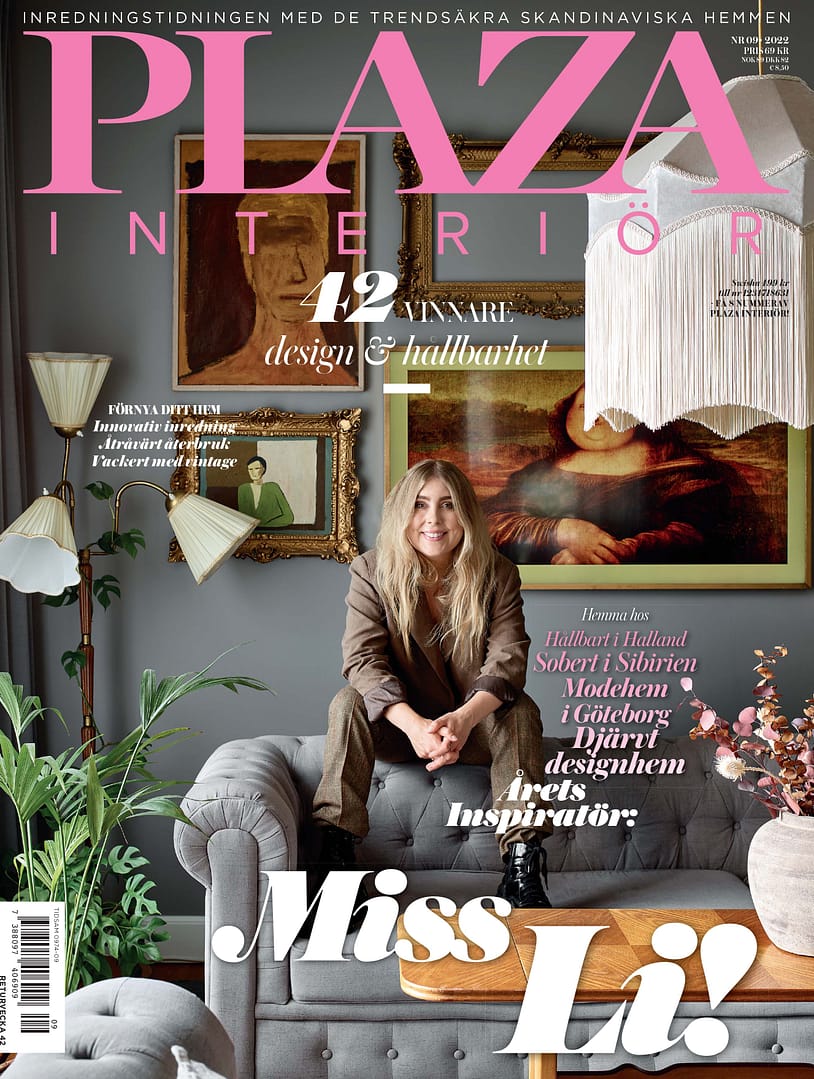 I det här inspirerande numret kan du läsa om Plaza Interiörs hederspris 2022 som bottnar sig i hållbarhet. Flera vinnare inom olika kategorier utses där bland annat Miss Li utsetts till Årets Inspiratör. Plaza besöker artisten hemma i Stockholm där hon pratar om hennes passion för hållbarhet och hur hon använder sig av det i sin inredning. Mer om insatser som bidrar till att göra vår (design)värld mer hållbar hittar du i Plaza Interiör nr 9.