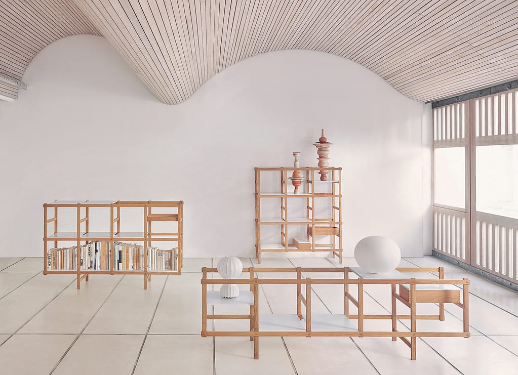 Det lekfulla hyllsystemet Frame belönades i magasinet Monocle redan 2019 i kategorin Best in Class. Harald har skött produktionen själv, men i år kliver pigga förlaget Design House Stockholm – ja, man jämför sig med ett bokförlag där de ordlösa berättelserna i trä och metall skapas av deras författare, alias designers – in för att ge större spridning. Frame kan byggas på höjden eller längden, den kan bli kort eller lång och hyllorna flyttas runt efter behag. Här har vi en möbel som bokstavligen ramar in vem man är eftersom de kulturella tingen vi fyller våra hem med gärna har en tendens att spegla vem vi också är, eller möjligen vill vara.
